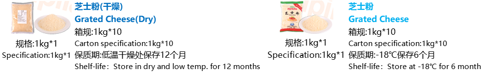 Grated Cheese is a powdered product obtained by special processes of drying and grinding cheese. Cheese itself is a fermented dairy product with a rich, milky flavor and contains a variety of nutrients, including protein, minerals and vitamins. In cooking, grated cheese is often used in baking, sauce making and seasoning. It can enhance the milky flavor of food and improve the taste. Additionally, grated cheese can also be used as a nutritional supplement to provide the body with a variety of nutrients.